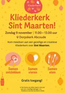 * 9 nov Kliederkerk Dorpskerk 11.00 – 13.00 uur met burgemeester Maarten Divendal over St Maarten